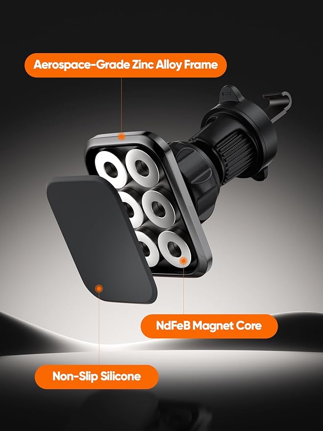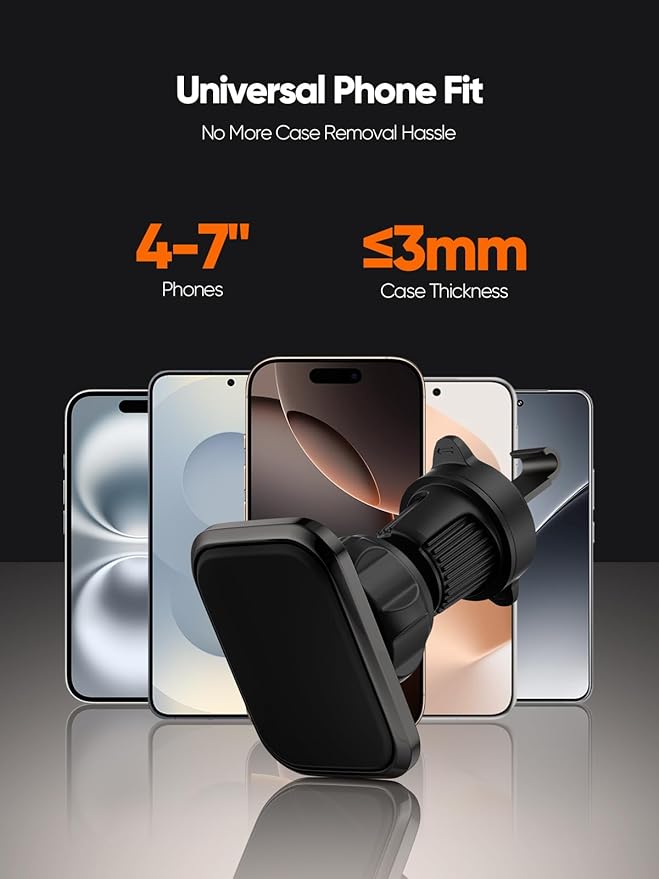 MagSafe Compatibility: Designed for seamless integration with MagSafe smartphones, offering ultimate convenience and reliability, Comes with a metal ring that can be adhered to non-MagSafe phones, allowing them to be used with the magnetic holder.