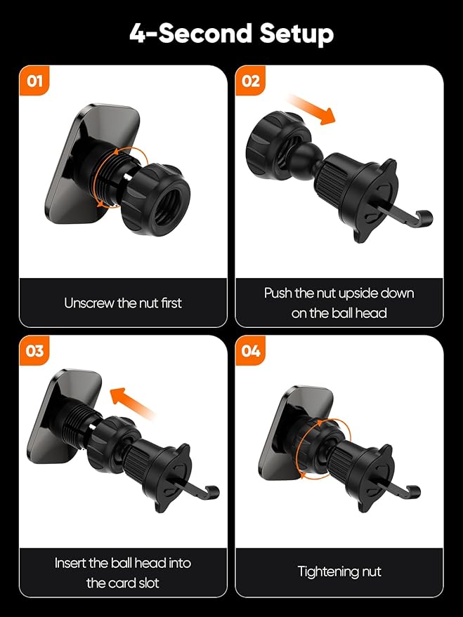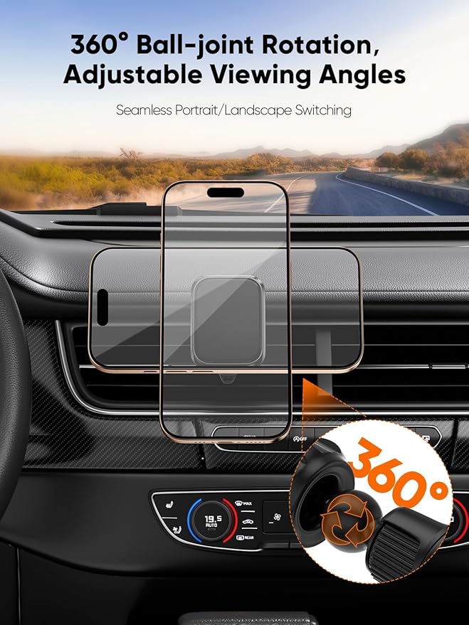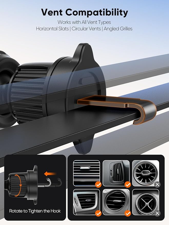 Easy AC Vent Mount: Simple installation on your car’s AC vent, providing a secure and stable phone position.